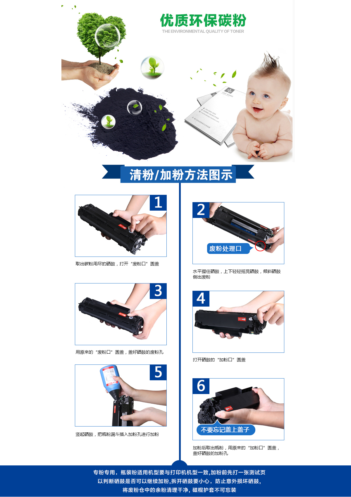 3、与原装碳粉相容性好,可填充碳粉平均可达3次以上,大大降低使用成本。