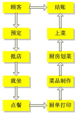 2.1预订-接待-点餐-厨房打印-厨房划菜-上菜-结账。